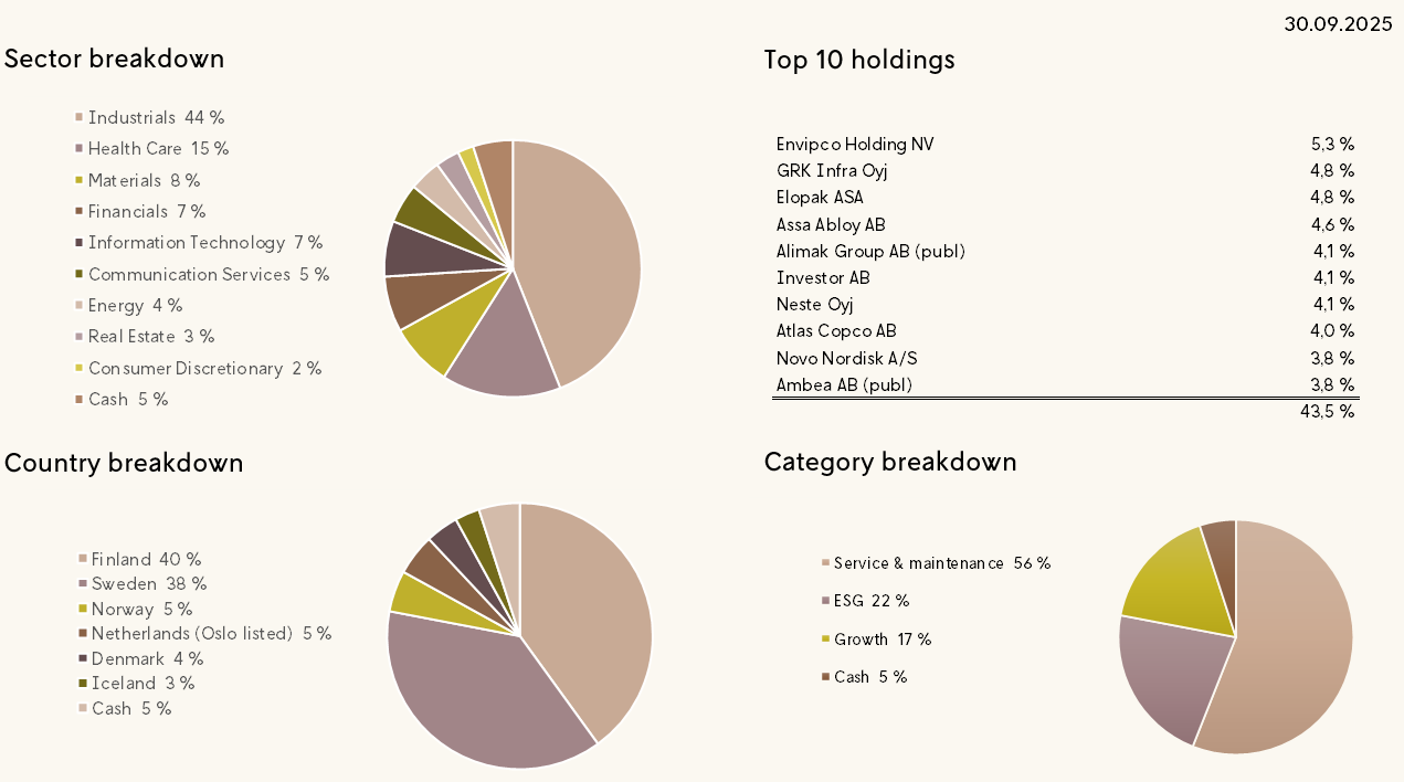 Nordic companies are often leaders in their respective industries and lead the way in sustainability. WIP Nordic Equity invests in high-quality, reasonably priced shares of Nordic companies through prudent risk-taking. The fund’s investments emphasize on companies which mainly operate within service and maintenance. The fund also invests in sustainability pioneers and growth companies.